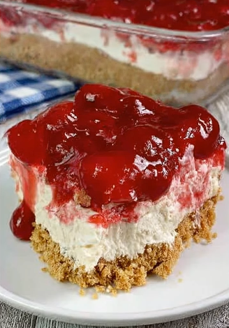 This No-Bake Cherry Cheesecake is an easy, creamy, and delightful dessert. With a buttery graham cracker crust and a rich cream cheese filling topped with bright cherry pie filling, it’s a perfect option for a special occasion or a quick sweet treat without ever having to turn on the oven. Ingredients: For the Graham Cracker Crust Ingredients:QuantityGraham cracker crumbs1 ¼ cupsUnsalted butter, melted¼ cupWhite sugar¼ cup For the filling: Ingredients:QuantitySoftened cream cheese1 (8 oz) packagePowdered sugar1 cupVanilla extract1 teaspoonHeavy whipping cream1 cupCherry pie filling or other filling of your choice1 (12.5 oz) can Instructions: Prepare the Crust: In a bowl, combine the 1 ¼…