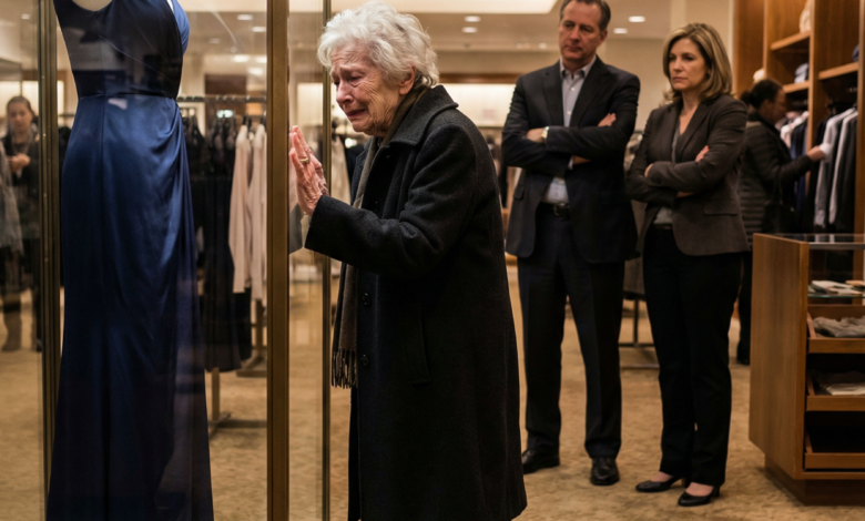 Two store managers moved to remove my eighty-two-year-old mother from a Main Street department store—until a young clerk found her name sewn inside the gown. “Mom, please, just tell me why we’re here.” She didn’t answer me. She just kept walking, one careful step at a time, past the glass doors and the cosmetics counter, with her old leather purse clutched under one arm and her cane tapping the polished floor. She looked small in that store. Not weak. Not helpless. Just… easy to dismiss. Her coat was ten years old. Her shoes were sensible. Her gray hair had been…