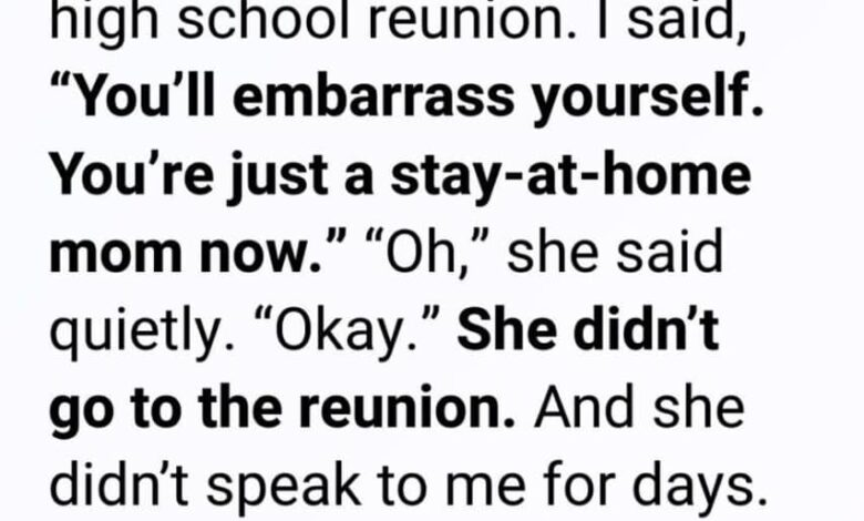 When Anna mentioned her high school reunion, I barely looked up. The kitchen was loud — one child missing a shoe, another stuck on math homework, the baby drumming a spoon against the tray like he had somewhere important to be. It felt like our usual chaos. Full. Busy. Important in its own way. “They’re doing a ten-year reunion next month,” she said, twisting her hair into that loose knot she ties when something matters more than she lets on. “I was thinking about going.” I laughed. “Why?” I asked. She paused. “Why not?” “So you can tell everyone you…