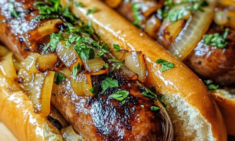 Oven-Braised Beer Brats with Sweet Caramelized Onions