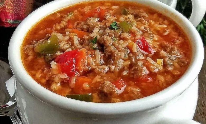 This Easy Stuffed Pepper Soup takes all the cozy flavors of classic stuffed peppers—savory beef, tender rice, and a rich tomato base—and turns them into a hearty, spoonable meal. It’s much quicker than stuffing and baking individual peppers but still delivers that same nostalgic taste. Easy Stuffed Pepper Soup Ingredients IngredientsAmountGround sirloin1 lbGreen bell pepper, chopped1White onion, finely diced1 cupDiced tomatoes1 can (29 oz)Tomato sauce1 can (15 oz)Chicken broth1 can (14 oz)White rice (uncooked)1 cupDried thyme1/4 tspDried sage1/4 tspSalt and black pepperTo taste How to Make Stuffed Pepper Soup Step 1: Brown the MeatIn a large stockpot over medium-high heat,…