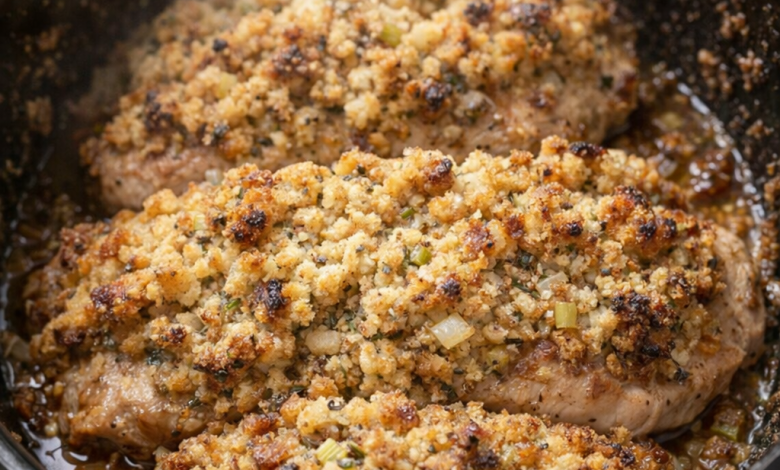This easy comfort dish is the kind that makes your whole home smell warm and inviting. It’s simple, filling, and brings to mind a traditional Sunday dinner—using just pork chops, stuffing mix, and cream soup to create something that tastes like it took much more effort than it actually did. The pork cooks up tender and juicy, while the stuffing turns soft, golden, and packed with savory flavor. It’s a great option for busy days when you want a satisfying, home-style meal without spending hours cooking. Serve it straight from the slow cooker, spooning the rich stuffing over the pork…