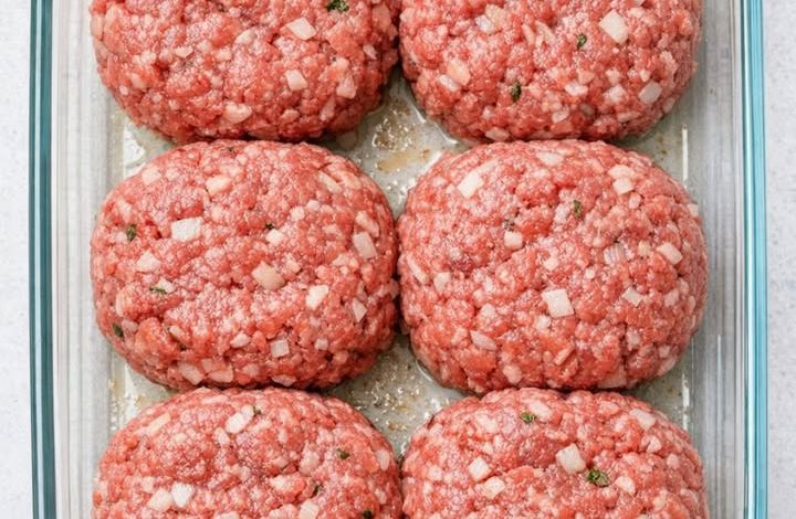Place raw ground beef patties into a glass casserole dish and add just four basic pantry ingredients to create a meal so delicious your family will keep asking for it again and again.