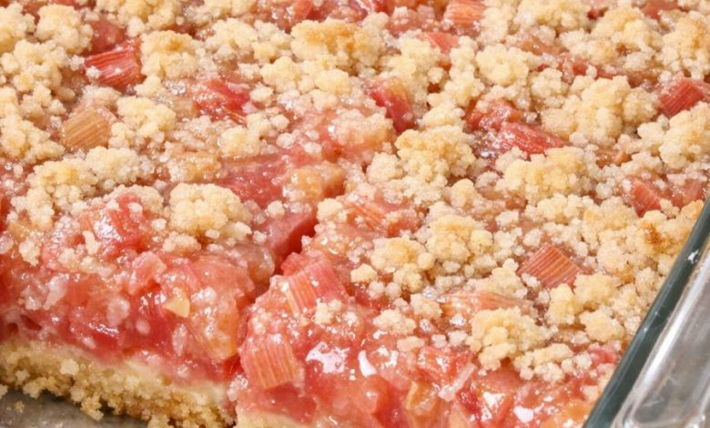 Aunt Helen’s 4-Ingredient Rhubarb Dream Bars