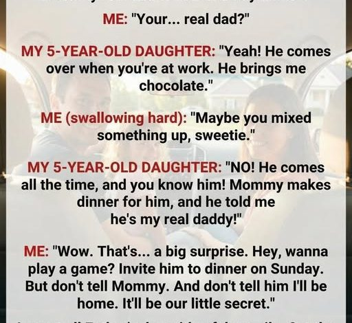The first time Lily said it, I laughed it off. It sounded like one of those strange, harmless things kids say without understanding what it means. We were driving home from daycare, the radio humming softly, when she spoke from the back seat: “Daddy, can we invite my real dad to dinner on Father’s Day?” My hands tightened around the wheel. I forced a laugh, though it didn’t feel natural. “What do you mean?” Lily was only five—carefree, kicking her legs, completely unaware of how her words shifted something deep inside me. She explained it simply: a man sometimes came…