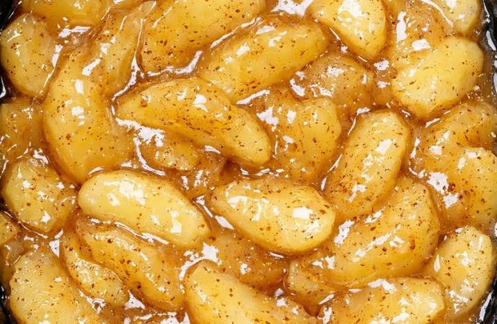 Pour canned apple pie filling into the slow cooker with just 3 other ingredients and somehow dessert tastes bakery-made.