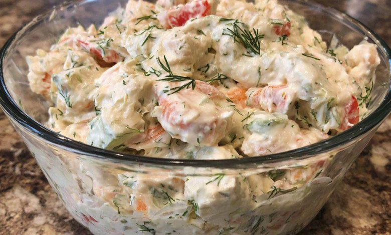 This Seafood Salad is a fresh, coastal-style favorite that brings out the naturally sweet, delicate flavor of imitation crab, balanced with the bright, herby touch of dill. Since there’s no cooking involved, it’s perfect for warm days or quick meal prep. A sprinkle of Old Bay seasoning adds that signature Maryland-inspired flavor, giving this simple dish a little extra character. Seafood Salad Ingredients Protein & Crunch 16 oz imitation crab meat (flaked style) ½ cup celery, finely diced 3 tablespoons red onion, very finely diced Dressing ½ cup mayonnaise 2 teaspoons fresh lemon juice 1½ tablespoons fresh dill, chopped (or…