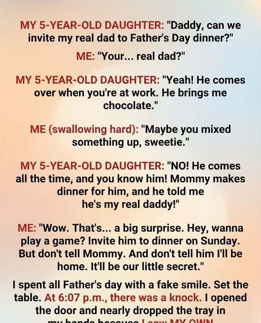 When I opened it, a man stood there holding a small box of gold-foil chocolates. He looked uncertain, as though he wasn’t sure whether to enter or retreat. Before I could speak, my daughter darted past me and hugged him tightly, laughing.