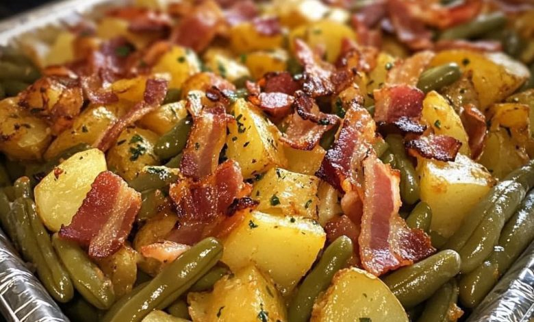 🥔 Country Ranch Green Beans and Potatoes with Bacon Ingredients IngredientAmountFresh green beans, trimmed1 poundBaby potatoes, halved or quartered1 ½ poundsBacon, cooked until crisp and crumbled6 slicesRanch seasoning mix1 packetButter, melted3 tablespoonsGarlic, minced2 clovesSalt and black pepperTo tasteFresh parsley, choppedFor garnish Instructions Step 1: Cook the PotatoesIn a large pot of salted water, boil the potatoes for 10–12 minutes, or until fork-tender. Drain and set aside. Step 2: Cook the Green BeansIn the same pot or a separate one, boil the green beans for 5–7 minutes, just until tender-crisp. Drain and set aside. Step 3: Prepare the BaconCook the bacon…