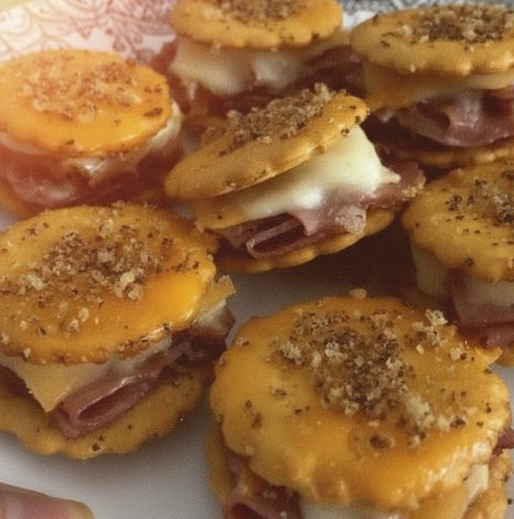 These mini sandwiches are the perfect bite-sized treat for gatherings, game days, or even a quick snack fix. The combination of buttery Ritz crackers, savory ham, gooey Swiss cheese, and a zesty seasoned topping makes each bite absolutely irresistible. Ingredients IngredientQuantityRitz crackers48Deli ham (sliced)8 slicesSwiss cheese (sliced)8 slicesButter (melted)4 tablespoonsDijon mustard2 teaspoonsWorcestershire sauce1 teaspoonGarlic powder½ teaspoonPoppy seeds1 teaspoonDried minced onion½ teaspoon Instructions Preheat OvenSet your oven to 350°F (175°C). Prepare the Baking SheetLine a baking sheet with parchment paper or aluminum foil for easy cleanup. Slice the FillingsCut both the ham and Swiss cheese into quarters so they fit neatly…