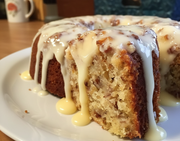 Banana Pecan Cake with Vanilla Glaze