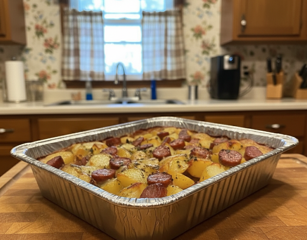 Smoked Sausage and Potato Bake This hearty one-pan dish is all about simplicity and comfort. With tender potatoes, colorful bell peppers, and smoky sausage baked together with herbs and butter, it’s a stress-free dinner that comes together with minimal effort and cleanup—perfect for busy weeknights. Ingredients: IngredientAmountSmoked sausage, sliced1 packageYukon Gold potatoes, quartered8Green bell pepper, diced1Yellow bell pepper, diced1Butter, cubed2 tablespoonsDried oregano1 teaspoonDried basil1 teaspoonGround black pepper½ teaspoonOlive oil2 teaspoons Instructions: Step 1: Prepare the IngredientsPreheat your oven to 375°F (190°C). In a large baking dish, layer the sliced smoked sausage, quartered potatoes, and chopped bell peppers evenly. Step 2:…