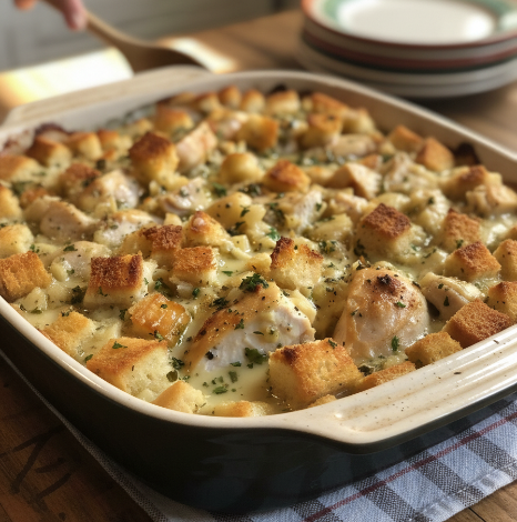 Swiss Chicken Casserole A cozy classic that’s perfect for busy nights, this Swiss Chicken Casserole delivers rich, creamy flavor with minimal effort. Juicy chicken breasts bake under a layer of tangy Swiss cheese and a velvety cream sauce, all topped with a golden, buttery stuffing crust. It’s a no-fuss, one-pan dinner the whole family will love. 🧂 Ingredients IngredientAmountBoneless, skinless chicken breasts4Swiss cheese slices6 slicesCream of chicken soup1 can (10.5 oz)Sour cream½ cupGarlic powder½ teaspoonOnion powder½ teaspoonSalt¼ teaspoonBlack pepper¼ teaspoonStuffing mix (dry)1 box (6 oz)Unsalted butter, melted¼ cup 👩🍳 Instructions 1. Preheat the Oven Preheat your oven to 350°F (175°C).…