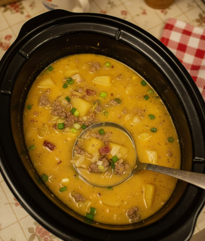 Slow Cooker Creamy Potato Bacon Soup This creamy potato bacon soup is a cozy, filling dish perfect for chilly days. Soft potatoes, smoky bacon, and sweet onions slowly simmer together in a flavorful broth, then the soup is enriched with a smooth blend of half-and-half and evaporated milk. The end result is a comforting and indulgent bowl of goodness. Ingredients: IngredientQuantityBacon, cut into ½-inch pieces6 slicesOnion, finely chopped1Condensed chicken broth2 cans (10.5 oz each)Water2 cupsLarge potatoes, diced5Salt½ teaspoonDried dill weed½ teaspoonGround white pepper½ teaspoonAll-purpose flour½ cupHalf-and-half cream2 cupsEvaporated milk1 can (12 fl oz) Instructions: Step 1: In a large skillet,…