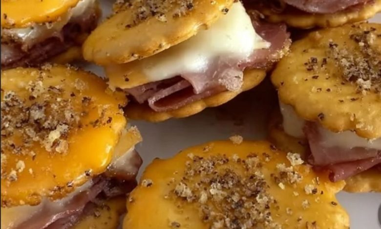 Ritz Cracker Party Sandwich BitesThese tasty mini sandwiches made with Ritz crackers are the ultimate easy appetizer for any event. Layers of savory ham and creamy Swiss cheese are tucked between two buttery crackers, then brushed with a flavorful glaze. Baked until bubbly and golden, these snack-sized bites are always a hit and tend to vanish quickly once served. Ingredients: IngredientAmountRitz crackers48Deli-style ham8 slicesSwiss cheese8 slicesMelted butter4 tablespoonsDijon mustard2 teaspoonsWorcestershire sauce1 teaspoonGarlic powder½ teaspoonPoppy seeds1 teaspoonDried minced onion½ teaspoon Instructions: Step 1: Build the SandwichesSet your oven to 350°F (175°C). On a baking surface, place 24 Ritz crackers. Add a…