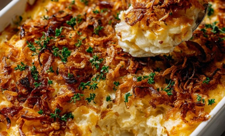 French Onion Funeral Potatoes Creamy, cheesy hash browns baked until golden and finished with a crispy onion topping—this is comfort food at its most irresistible. If you’re looking for a side dish that always disappears first, this is it. French Onion Funeral Potatoes are a beloved casserole packed with flavor: soft hash browns in a rich, cheesy sour cream sauce, enhanced with sautéed onions and garlic, and finished with a generous handful of crunchy fried onion rings. Whether you’re feeding a crowd at a holiday dinner, potluck, or just treating yourself to something cozy, this dish hits all the right…