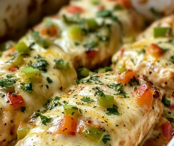 Low-Carb Fajita Chicken BakeThis flavorful and fuss-free one-pan dish brings all the bold, smoky flavors of traditional fajitas—minus the carbs. Juicy chicken breasts are coated in a spiced seasoning blend, baked with vibrant bell peppers, and finished with a melty blanket of cheddar and mozzarella cheese. It’s an easy, satisfying meal perfect for busy evenings. Ingredients: IngredientQuantityBoneless, skinless chicken breasts4Olive oil1 tablespoonChili powder1 teaspoonCumin1 teaspoonGarlic powder½ teaspoonOnion powder½ teaspoonSalt and pepperTo tasteRed bell pepper, diced1Green bell pepper, diced1Shredded Cheddar cheese1 cupShredded mozzarella cheese1 cup Instructions: Preheat & Prep:Set your oven to 375°F (190°C). Arrange the chicken breasts in a baking…