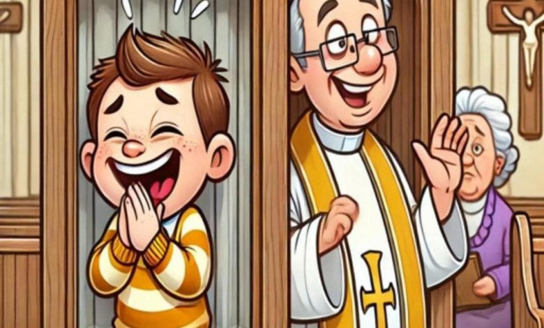 Tommy’s First Confession Every Sunday, young Tommy accompanied his sweet grandmother to church. When the time came for his first confession, she lovingly explained the tradition.“You’ll go into a small room, talk to the priest, and tell him the wrong things you’ve done,” she said gently. “He’ll listen and forgive you.” Tommy, a bit anxious but curious, agreed. He stepped into the confessional booth, the curtain rustling closed behind him. As he sat down, the wooden screen slid open to reveal the kindly face of the priest. With a nervous whisper, Tommy began: “Bless me, Father, for I have sinned.”…