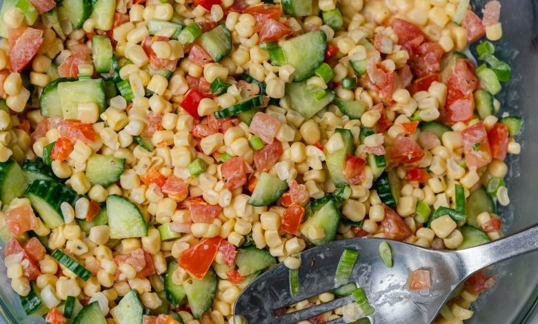 Shoepeg Salad A bright and refreshing side dish, this Shoepeg Salad is ideal for picnics, cookouts, or any gathering. Packed with crunchy veggies and tossed in a creamy, tangy dressing, it’s both flavorful and simple to prepare. Ingredients For the Salad: White or Shoepeg corn (drained) – 3 cans Cucumber (large, diced) – 1 Tomatoes (diced) – 2 Red bell pepper (diced) – ½ Green onions (chopped) – 5 For the Dressing: Mayonnaise – ⅔ cup White vinegar – 1 ½ tablespoons Granulated sugar – 1 tablespoon Instructions Prepare the Salad:In a large mixing bowl, add the drained corn, diced…