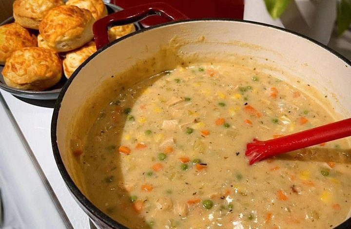 Chicken Pot Pie Soup This cozy and flavorful soup brings all the classic elements of chicken pot pie into a warm, creamy bowl. Packed with juicy chicken, hearty vegetables, and a rich broth, it’s the ultimate comfort food for cold evenings. Ingredients Main Ingredients: Light butter (divided) – 3 tablespoons Cooked chicken (shredded or cubed) – 3 cups Onion (diced) – 1 Celery stalks (finely chopped) – 4 Carrots (finely chopped) – 1 cup Garlic (minced) – 5 cloves All-purpose flour – ⅓ cup Gold or Yukon potatoes (chopped) – 2 ½ cups Low-sodium chicken broth – 4 cups Chicken…