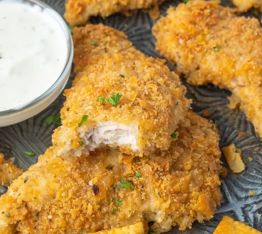 Golden, crunchy, and irresistibly cheesy—these Crispy Cheddar Cracker Chicken Strips are tender on the inside and coated in a flavorful, cheesy crust on the outside. Baked to perfection in under 30 minutes, they’re just as satisfying as classic fried chicken, like my Crispy Fried Chicken Cutlets, but without the mess. ⭐ Why You’ll Love This Recipe Ready in just half an hour, these cheesy, oven-baked chicken tenders make a perfect weeknight dinner—similar to my Oven-Fried Chicken Thighs. They’re fast, family-friendly, and easy to pair with your go-to sides. Using cheddar crackers like Cheez-Its for the coating brings that beloved snack-time…