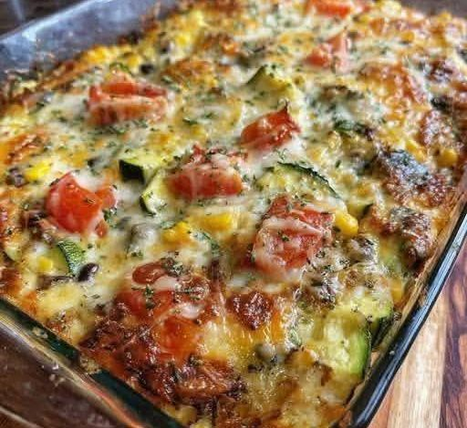 Looking for a delicious weeknight meal or a crowd-pleasing potluck option? This Tex-Mex Zucchini Bake combines tender zucchini, hearty black beans, sweet corn, and gooey cheese with zesty taco spices for a dish that’s vibrant, comforting, and full of flavor. 🛒 Ingredients IngredientAmountZucchini, thinly sliced3 mediumBlack beans, drained and rinsed½ cupCorn (canned, frozen, or fresh)½ cupTomato, chopped1 mediumTaco seasoning1 tbspCheddar cheese, shredded1 cupPepper jack cheese, shredded½ cupOlive oil2 tbspGarlic powder1 tspButter, melted2 tbsp 👩🍳 Instructions Preheat the OvenBegin by setting your oven to 375°F (190°C). Lightly coat a baking dish with non-stick spray or a splash of olive oil. Combine…