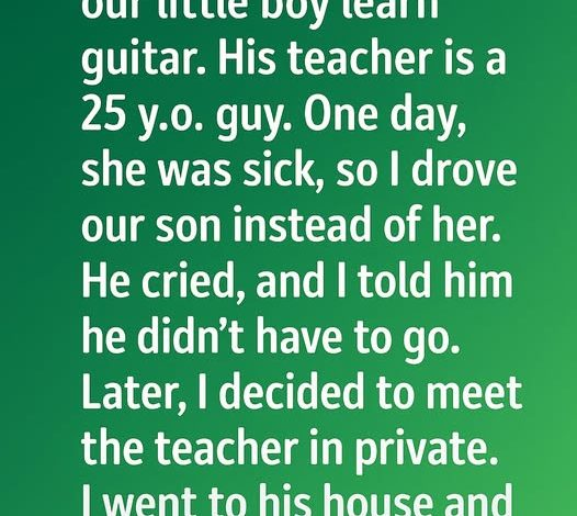 My wife was determined that our little boy would learn to play the guitar. His teacher was a young man, about twenty-five, with a calm energy and easy smile. One afternoon, when my wife wasn’t feeling well, I offered to drive our son to his lesson instead. On the way there, he suddenly began to cry. I told him we could skip the class if he wanted, and he nodded in relief. Still, something about his reaction lingered with me, and I decided to meet the instructor myself to understand what was really happening. When I arrived at the teacher’s…