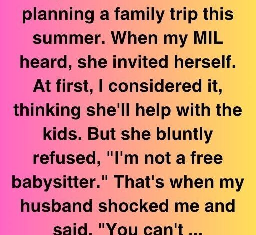 This summer, my husband and I planned a simple family getaway—just the four of us. Quiet. Relaxing. But the moment my mother-in-law found out, she decided to invite herself along. At first, I thought maybe it could work—she might help with the kids. Then she said bluntly, “I’m not your free babysitter.” Before I could say anything, my husband shut me down: “You can’t say no to her. She’ll make things miserable for us.” That’s when it hit me. For years, I’d been walking on eggshells around her—dodging her subtle jabs, swallowing her critiques, just trying to keep the peace…