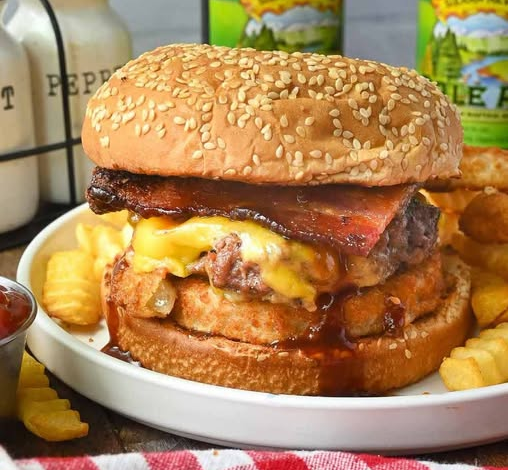 This BBQ Bacon Onion Ring Burger brings bold flavors and hearty textures to your plate. Featuring a juicy grilled beef patty, crispy bacon, gooey melted cheese, crunchy onion rings, and tangy barbecue sauce, it’s everything you want in a burger. Inspired by the fast food favorite from Carl’s Jr. and Hardee’s, this homemade version delivers all the satisfaction with a personal touch. Pair it with sweet corn on the cob, baked beans, or creamy potato salad for the ultimate cookout combo. Why You’ll Love This Burger Whether you’re throwing a summer barbecue or just craving a solid burger night, this…
