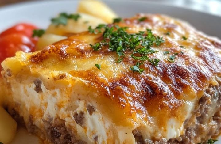 This wholesome Amish Breakfast Casserole is the perfect comfort dish—golden, cheesy, and packed with flavor. Baked to perfection, it layers seasoned ground beef, crispy hashbrowns, and creamy cottage cheese, all tied together with fluffy eggs and topped with melted cheddar for a rich, hearty start to the day. Amish Breakfast Casserole Ingredients: 1 pound ground beef 1 medium onion, diced 3 cups shredded hashbrowns 1 1/2 cups cottage cheese 2 cups shredded cheddar cheese, divided 6 large eggs 1/2 cup milk Salt and black pepper, to taste Instructions: Step 1: Brown the MeatPreheat your oven to 350°F (175°C). In a…