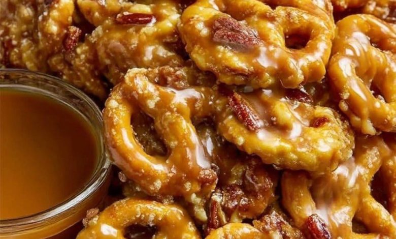 Salty mini pretzels are coated in a rich, homemade butter–toffee mixture, baked until crisp, and finished with crunchy Heath toffee bits for the perfect sweet-and-salty treat. Butter Toffee Pretzels Ingredients IngredientAmountMini pretzel twists10 cups (1 bag, 16 oz)Light brown sugar, packed1 cupUnsalted butter, cubed1/2 cup (1 stick)Light corn syrup1/4 cupVanilla extract1 tspBaking soda1/2 tspHeath toffee bits1 bag Instructions 1. Heat Oven & Prepare Pan Warm the oven to 200°F (95°C). Lightly grease a large roasting pan—disposable pans are great for this. Spread the 10 cups of pretzels in an even layer and set aside. 2. Cook the Toffee Mixture In…