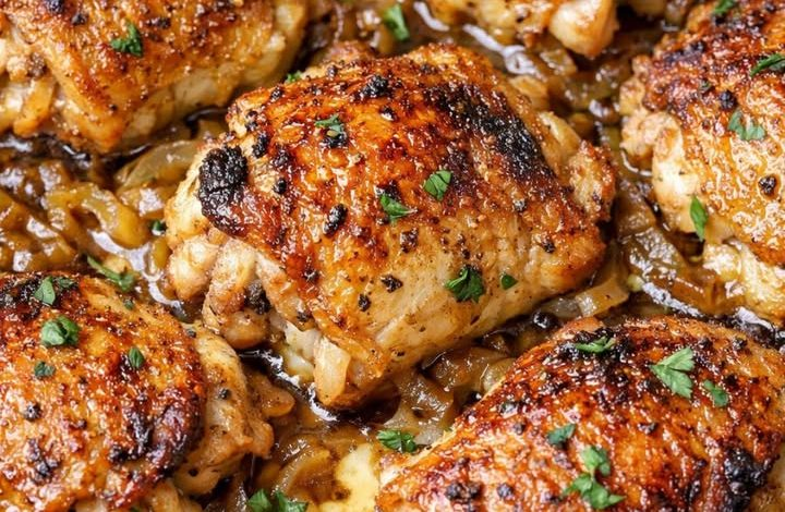 This Oven-Baked 3-Ingredient Onion Soup Mix Chicken transforms everyday ingredients into a deeply flavorful, restaurant-style dish. The onion soup mix combined with olive oil forms a thick coating that clings to the chicken, sealing in moisture and taste. Starting in a hot cast iron skillet helps crisp the underside, while the oven finishes it off with perfectly golden, crispy skin. Onion Soup Mix Chicken Ingredients:• 2½–3 lbs chicken thighs (bone-in, skin-on)• 1 (1 oz) packet dry onion soup mix• 2–3 tablespoons olive oil (or melted butter) Instructions: Preheat your oven to 400°F. Place a cast iron skillet inside while the…