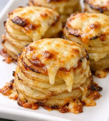 There’s something especially satisfying about dishes that look elegant but are surprisingly easy to prepare. These Cheesy Potato Stacks are a great example—thin slices of potato layered with garlic butter and sharp cheddar, then baked until tender, golden, and packed with flavor. They’re cozy enough for a weeknight meal yet pretty enough to serve at a holiday table, transforming simple ingredients into a standout side. No special tools or complicated steps required—just buttery, cheesy layers baked into tidy stacks. Oven-Baked 4-Ingredient Cheesy Potato Stacks ❤️ Why You’ll Love This Recipe 🥔 Uses just 4 basic ingredients⏱️ Only about 15 minutes…