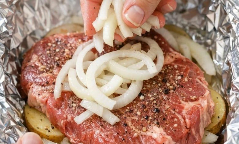 This Oven-Baked Beef & Onion Foil Packet is a perfect “minimal effort, maximum flavor” dinner. Wrapping the steak with onions traps steam, allowing the onions to caramelize into a sweet, jammy topping while the beef remains tender and juicy. The key is the “onion bed” technique—keeping the steak off the foil so it braises in its own juices instead of simply roasting. Oven-Baked Beef & Onion Foil Packet Ingredients Beef steak (sirloin, round, or chuck) – 1½–2 lbs Large onions, thinly sliced – 2 Olive oil or melted butter – 3 tbsp Salt – 1½ tsp Black pepper – 1…
