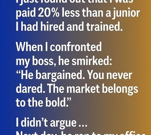 After twelve years of loyal service, I learned I was earning 20% less than a junior employee I had personally hired and mentored. When I brought it up to my boss, he merely shrugged and said with a smirk, “He negotiated better. You didn’t. That’s how the market works.” I didn’t protest. I didn’t argue. The next morning, he appeared at my door looking uneasy. On my desk sat my resignation letter—formal, concise, and professional. Attached was a detailed summary of every client, system, and project I managed. No confrontation. No demands. Just a simple thank-you and two weeks’ notice.…