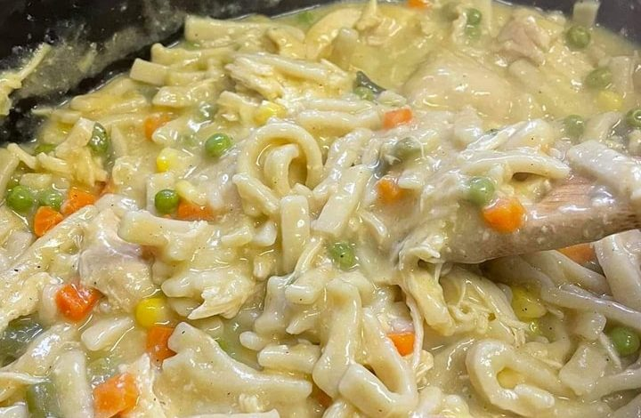 🥣 Slow Cooker Chicken Noodle Meal This cozy Chicken Noodle Meal comes together effortlessly in the slow cooker, creating a creamy, savory broth filled with tender shredded chicken, hearty frozen noodles, and wholesome vegetables. 🧾 Ingredients 2 large frozen chicken breasts 1 packet chicken gravy mix 1 (32 oz) carton 50% less sodium chicken broth 1 family-size can cream of chicken soup ½ stick butter 1 (24 oz) package frozen noodles 1 (10 oz) bag frozen mixed vegetables ½ tsp black pepper ½ tsp onion powder A pinch of dried parsley 👩🍳 Instructions Step 1: Build the BasePlace the frozen…