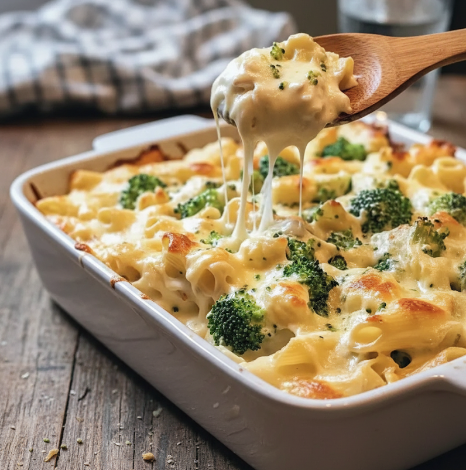 Some meals do more than satisfy hunger—they bring comfort in every bite. This Cheesy Baked Chicken and Broccoli Alfredo Pasta is one of those cozy classics. Silky Alfredo sauce coats tender rigatoni, juicy rotisserie chicken adds depth, and crisp-tender broccoli adds freshness and color. A golden, melty topping of mozzarella and Parmesan seals it all together into a dish that invites seconds—and maybe thirds.