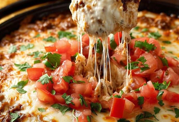 Remove the skillet carefully. Top with diced tomatoes, cilantro, and queso fresco if desired. Serve immediately with tortilla chips while the cheese is hot and gooey.