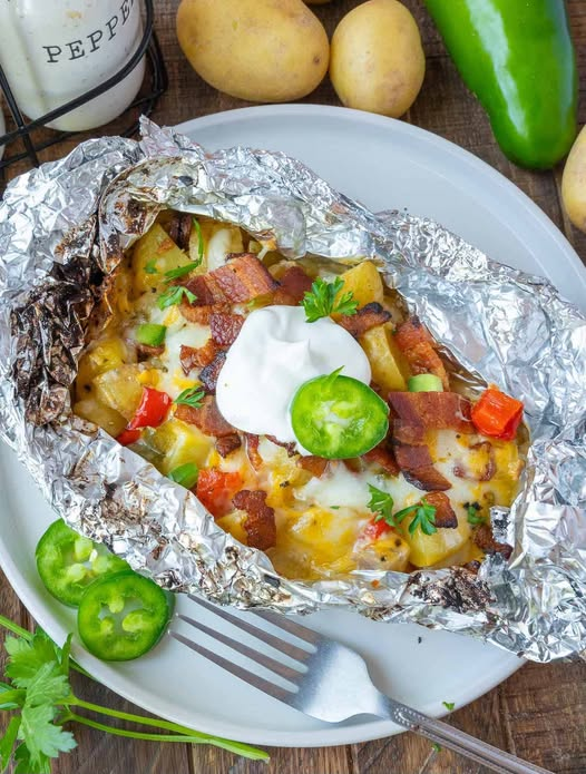 Step 4: Place the packets directly on the grill over medium heat (or on a baking sheet if using the oven). Cook for about 25–30 minutes until potatoes are fork-tender.