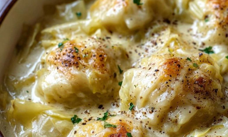 This traditional German comfort dish combines buttery, tender cabbage with soft, homemade dumplings for a filling and satisfying meal that works beautifully as a main course or hearty side.