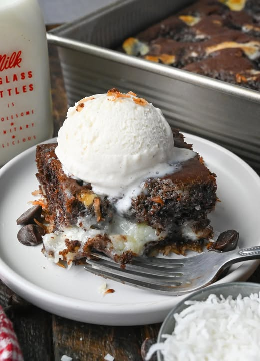 This Decadent Chocolate Quake Cake is packed with rich chocolate flavor and a luscious cream cheese filling, layered with coconut flakes and crunchy pecans. It’s a moist, irresistible chocolate cake that doesn’t need any frosting—the cream cheese filling melts into gooey pockets inside the cake. A perfect treat for chocolate and cheesecake fans alike! If you love cream cheese desserts, try my Strawberry Roll Cake next.