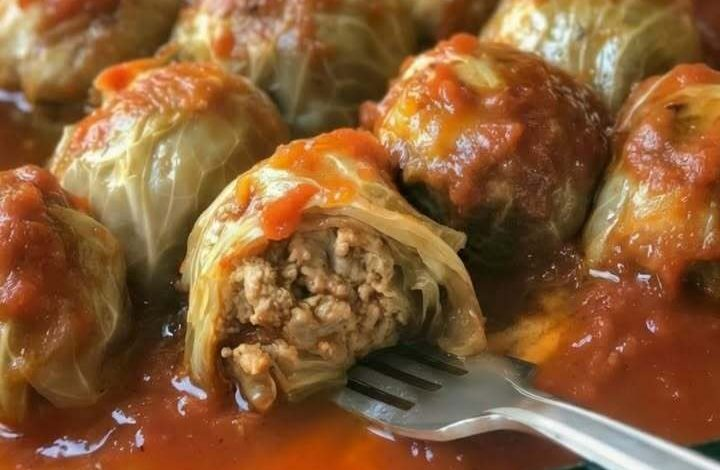 Hearty and comforting, these classic stuffed cabbage rolls are ideal for family meals. Tender cabbage leaves are wrapped around a flavorful mixture of ground meat and rice, then gently simmered in a rich tomato sauce until perfectly soft and satisfying.