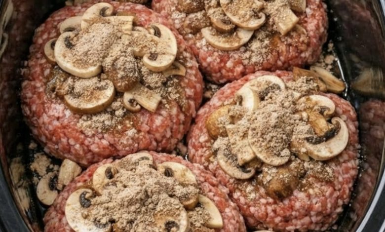 Cover and cook on Low for 4–5 hours. The patties will become tender while the onions break down into a rich, flavorful gravy.