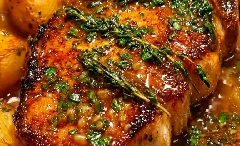 Some meals feel like an exhale at the end of a long day—and Garlic Herb Pork Chops with Baby Potatoes is exactly that kind of dinner. As the oven heats, the house fills with the comforting scent of garlic and herbs, and suddenly cooking feels less like a chore and more like a small moment of calm.