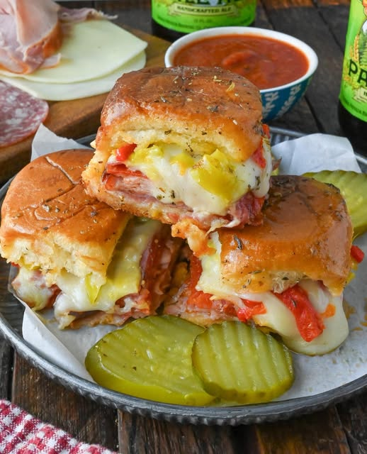 Packed with gooey cheese and savory veggies, these irresistible Italian-style sliders come together in just 30 minutes—perfect for parties, potlucks, or a quick game day snack! With buttery, golden tops and a trio of classic deli meats, these baked mini sandwiches are guaranteed to be a hit with your guests.