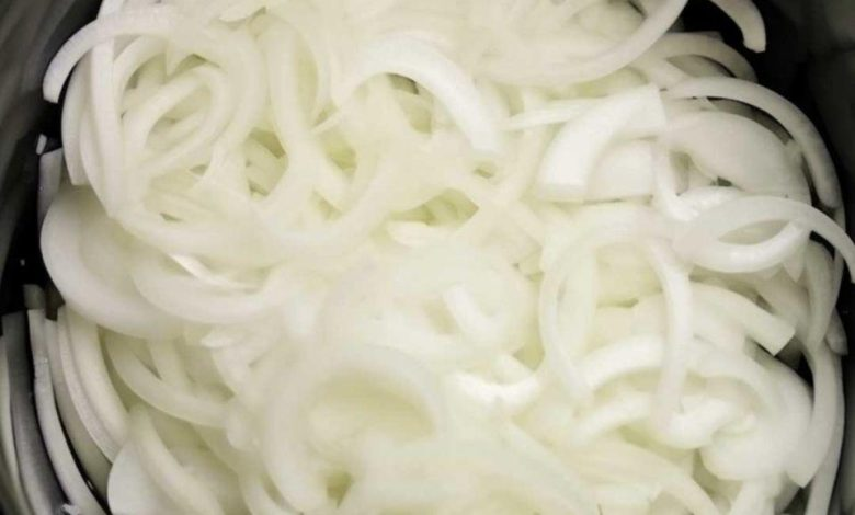 Add the sliced onions to your slow cooker. Drizzle with melted butter and olive oil, then season lightly with salt and pepper. Cover and cook on LOW for 10–12 hours, until the onions turn a rich, golden brown and are beautifully caramelized.
