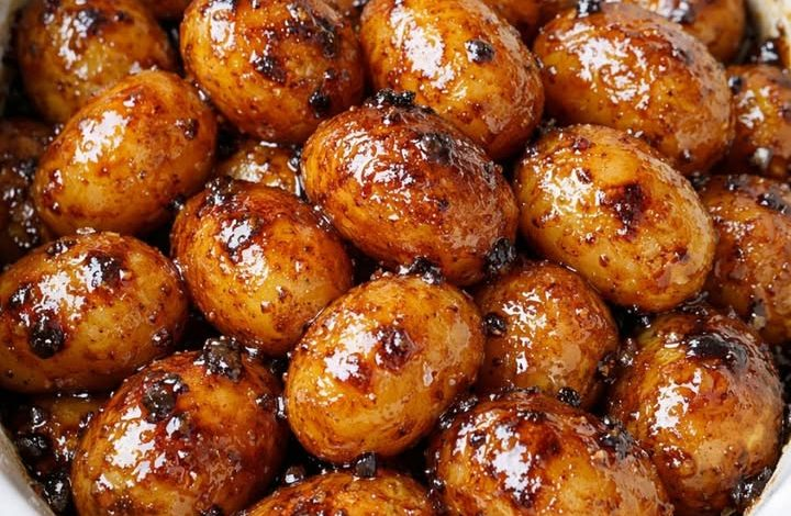 Wash the potatoes and dry them well—this helps the glaze thicken as it cooks. Keep smaller potatoes whole and cut larger ones in half for even cooking.