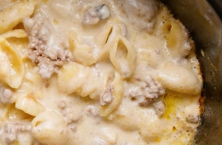 Slow Cooker Creamy Ground Beef & Shells Casserole A warm, comforting meal that’s perfect for busy weeknights. With tender pasta, rich mushroom sauce, and melty cheese, this dish delivers hearty flavor with minimal effort—just toss everything into the slow cooker and let it work its magic. Ingredients: IngredientQuantityGround beef (80/20 lean)1 poundCream of mushroom soup2 (11-ounce) cansShredded cheddar cheese2 cupsShell pasta, uncooked2 cupsMilk2 cupsOnion powder½ teaspoonKosher salt & freshly ground pepperTo taste Instructions: Step 1: Brown the Ground BeefIn a skillet over medium-high heat, cook the ground beef, breaking it apart with a spoon or spatula, until it’s fully browned.…
