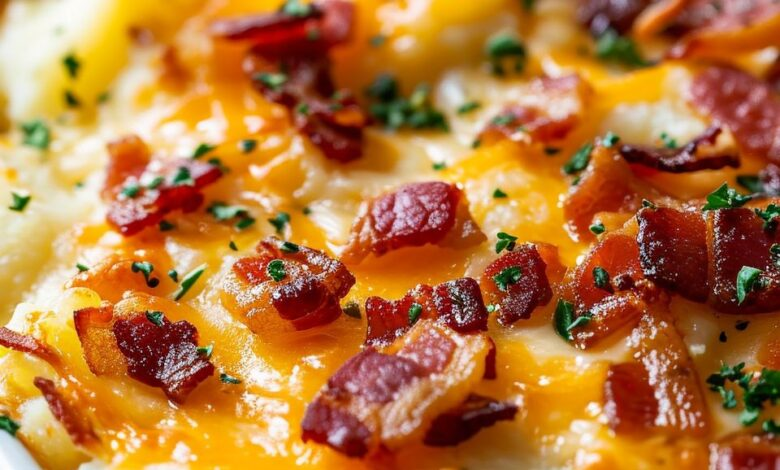 Loaded Scalloped Potato Bake Elevate your home-cooking game with this irresistible Loaded Scalloped Potato Bake. This rich, flavorful dish layers thinly sliced russet potatoes with sharp cheddar cheese, crispy bacon, creamy sour cream, and warm spices. It’s the perfect comfort food for family dinners or gatherings. Ingredients IngredientQuantityRusset Potatoes (peeled and thinly sliced)3 poundsSharp Cheddar Cheese (shredded)2 cupsSour Cream1 cupWhole Milk½ cupUnsalted Butter (melted)ÂĽ cupBacon (cooked and crumbled, extra for garnish)6 slicesMedium Onion (chopped)1Garlic (minced)3 clovesSmoked Paprika½ teaspoonDried Thyme½ teaspoonSalt and Black PepperTo tasteFresh Chives (chopped, for garnish)ÂĽ cup Instructions Prepare the Oven and DishPreheat your oven to 350°F (175°C).…