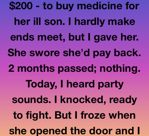 My neighbor showed up at my door one evening—eyes puffy, hands shaking—and asked if she could borrow $200. She said her son needed medication, and she was short. I wasn’t doing well financially either—constantly dodging overdue notices and praying my debit card wouldn’t embarrass me—but I gave her the money anyway. She promised she’d return it soon. Weeks went by. Then months. Nothing. No text, no knock, no envelope under the door. Then tonight, loud music thumped through the walls. Children shouting, balloons popping, laughter spilling into the hallway. A party. In her apartment. I sat on my sagging couch,…